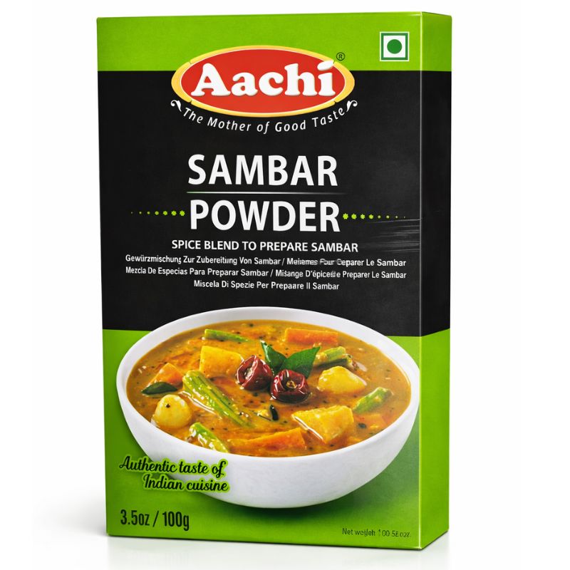 Traditional South Indian spice blend specially formulated for preparing authentic Sambar. Aachi Sambhar Powder combines lentils and aromatic spices to deliver a rich, spicy and well-balanced flavor ideal for lentil-based curries served with rice, idli or dosa.