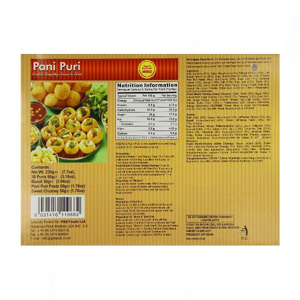 Heera Pani Puri/Gol Gappay + Masala 30PCS - The Heera's Pani Puri is an ideal snack item. It offers a lip-smacking taste through its sweet, sour, and spicy delights. It is a perfect accompaniment to your tea and coffee time treats.