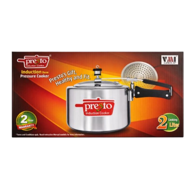 The Prestco 2-litre Induction Pressure Cooker is designed for fast, safe, and energy-efficient cooking. Made from durable, high-quality stainless steel, it is compatible with induction as well as gas stoves. Ideal for daily cooking of rice, lentils, vegetables, curries, and small family meals. Features a secure locking lid, heat-resistant handle, and efficient pressure regulation for consistent results.